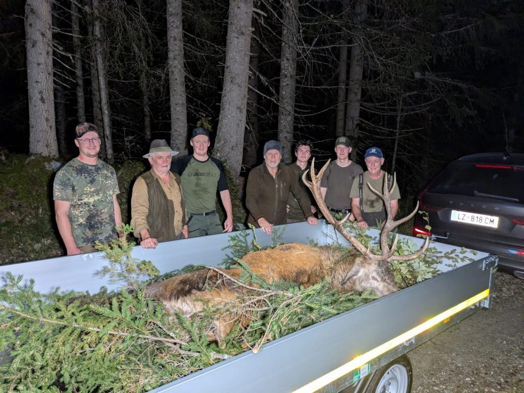 Ein kräftiges Weidmannsheil unserem Vereinskassier zur Erlegung seines Brunfthirsches, ein großer Dank auch dem Bergungsteam!